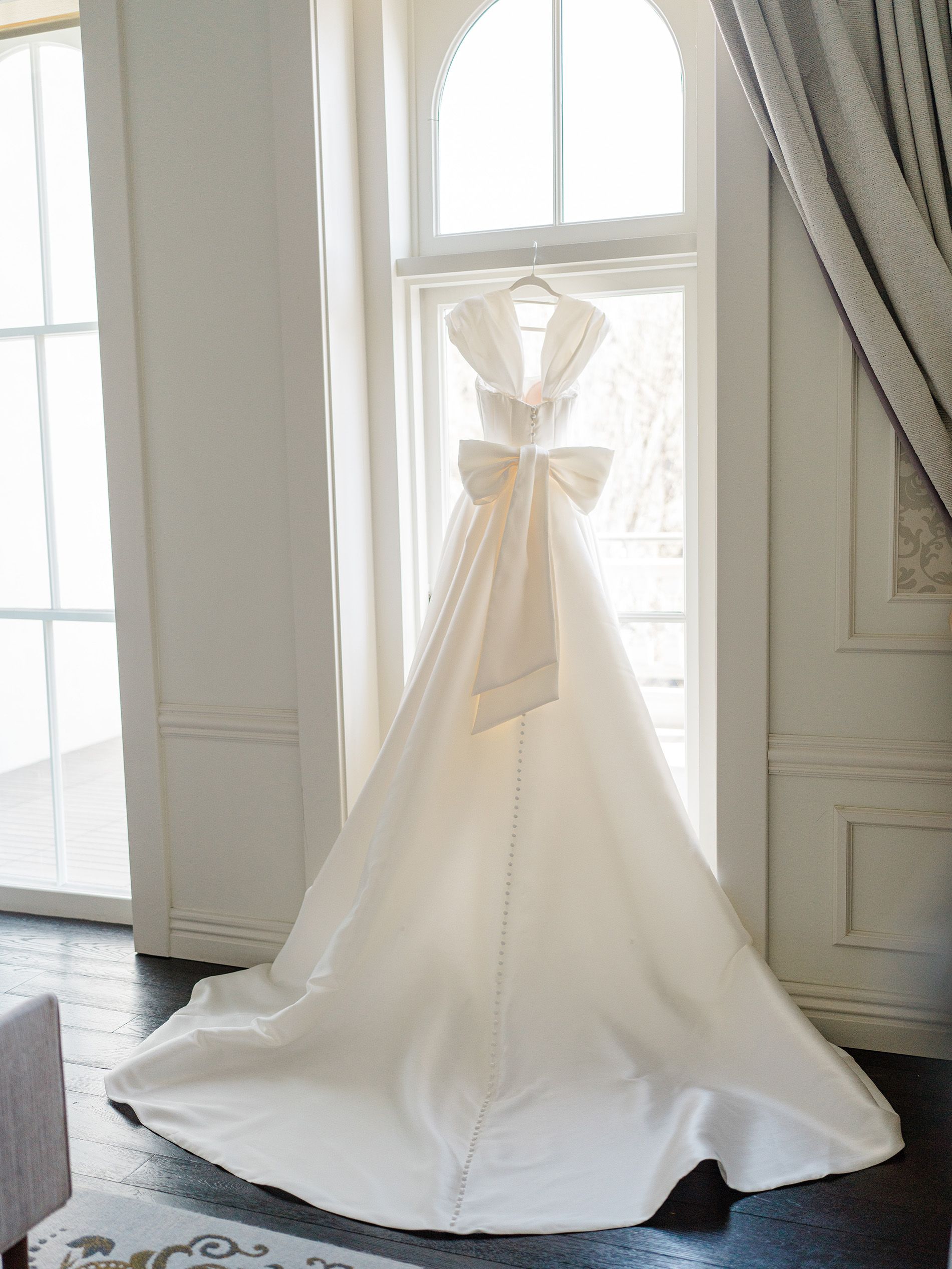 Marisa hand sewed NINETY-FOUR buttons down the back of her dress, designed and sewed the bow on the back, and made the veil!!