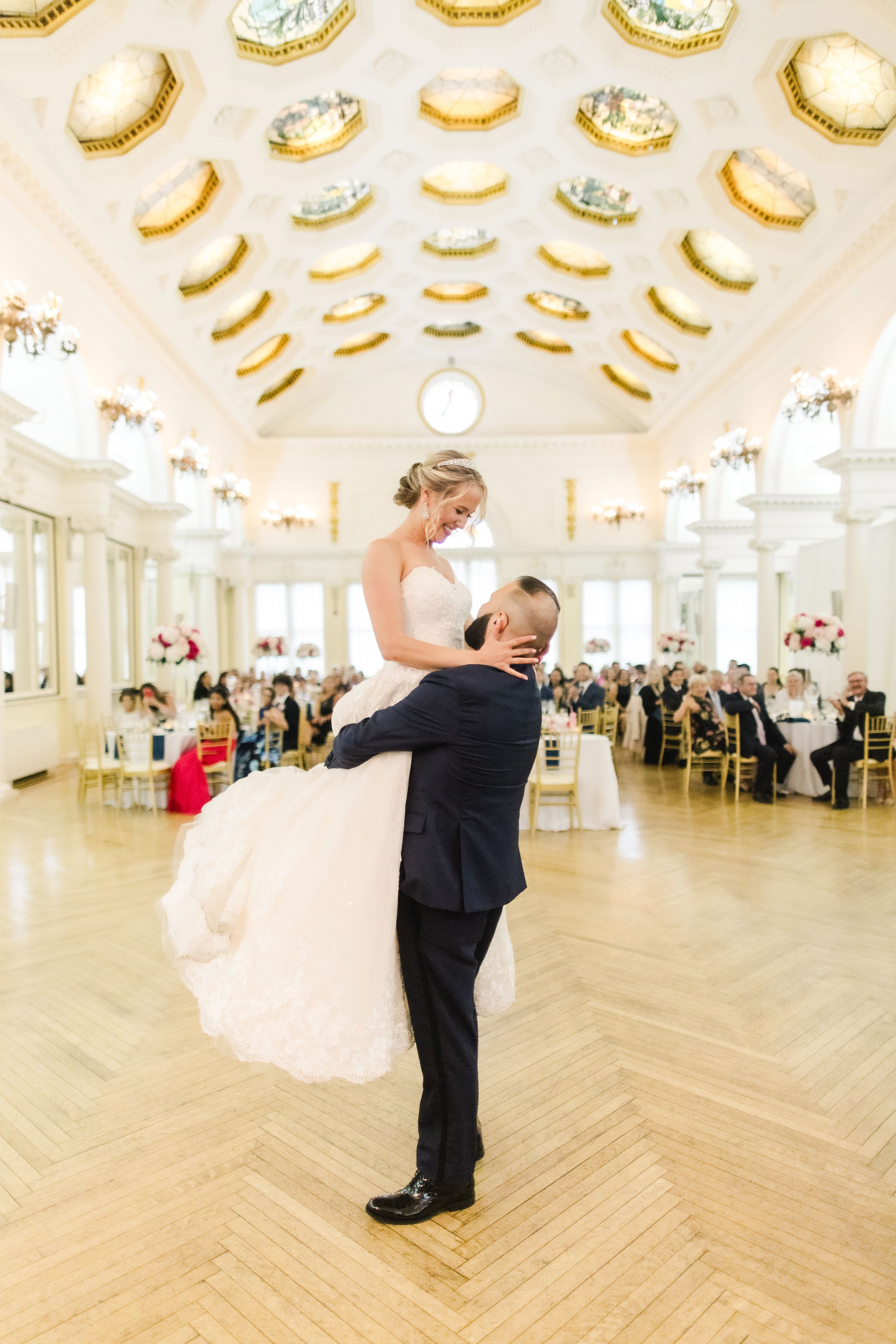I always knew I wanted to go back to my hometown to get married – specifically the Canfield Casino in Saratoga Springs, where my parents were married 36 years earlier. While we looked at Boston venues before touring in Saratoga, it came as no surprise when Doug was equally enchanted by the Canfield Casino's beautiful ceilings and historical relevance.