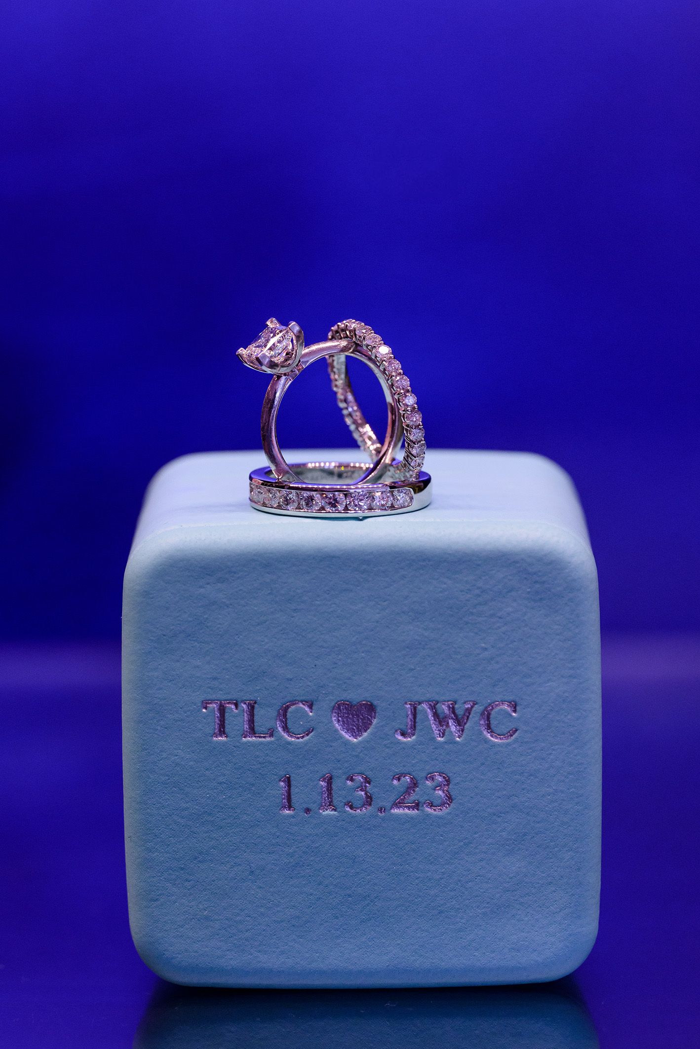 $6.66 was my total when I stopped at Stewart's on my way to our first date. The cashier said "that's unlucky" and I headed off to Starbucks. Then, JARED DIDN'T SHOW UP! Apparently, I never confirmed our date, so Jared thought I changed my mind. We ended up still meeting that night and started dating 17 days later on FRIDAY THE 13th (1.13.17!) In 2021, Jared brought me to Tiffany & Co. to pick out a 1.13 carat diamond. He specifically wanted to get me a 1.13 carat because 1.13 is the day we started dating (1.13.17) & the day we set for a wedding date (1.13.23.) We also text each other hearts at 1:13PM almost daily to let each other know we're thinking about each other. My mother in law read Corinthians 1:13 at our ceremony. In addition, instead of tables numbers at our wedding we had table "love is patient" table "love is kind," etc. Each table tent had a story of when our love was patient, kind, etc. Finally, our wedding hashtag was #TLC113 (because I always said I wanted to marry a man with the last name of C so my initials would be TLC) so our hashtag was #TLC113. We chose the colors blue and green because in our song "Die a Happy Man" Thomas Rhett says "If I never get to see the Northern Lights I could die a happy man." Therefore, our colors were blue and green! Our wedding day was a picture perfect fairytale and completely US.