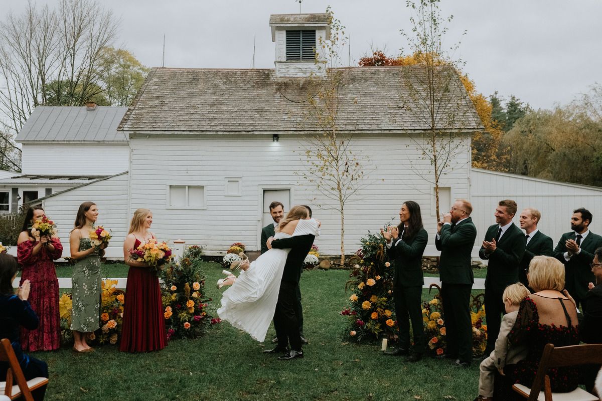 On the 10th anniversary (to the day!) of Eddie asking me to be his girlfriend, he asked me to marry him. It was an easy YES! from me. We had made so many memories in Upstate NY over the years, that when it came time to plan the wedding, it seemed obvious to use the backyard of my family home here. We forced all our California friends to make the trek out to experience the autumnal magic and it was a huge hit. We had the happiest weekend of our lives having all our favorite people in such a beautiful and meaningful place.
