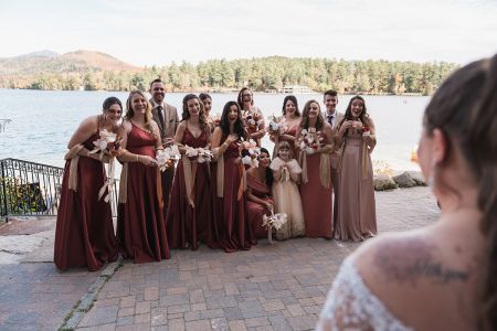 Lake Placid is exactly where we wanted to have the wedding. It was the first trip we took together, and a place that fills us both with joy. We chose Golden Arrow as our venue which sits directly on Mirror Lake, and we decided on October 10th so that all our guests could enjoy the breathtaking fall foliage of the Adirondacks.