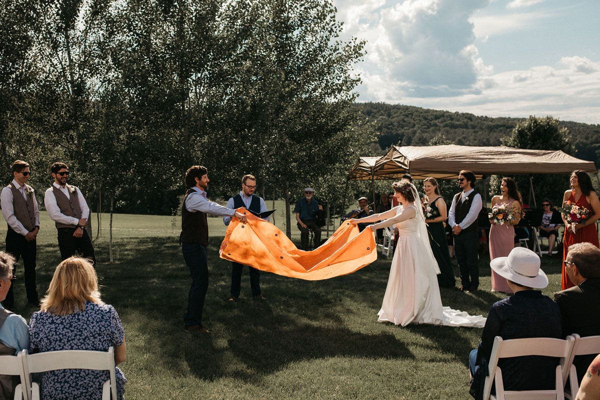Choose things that are meaningful to you- We didn't exchange rings but instead folded a tarp together; a little ritual we have done hundreds of times while camping and can do in the dark, in the rain or wind, or without speaking.