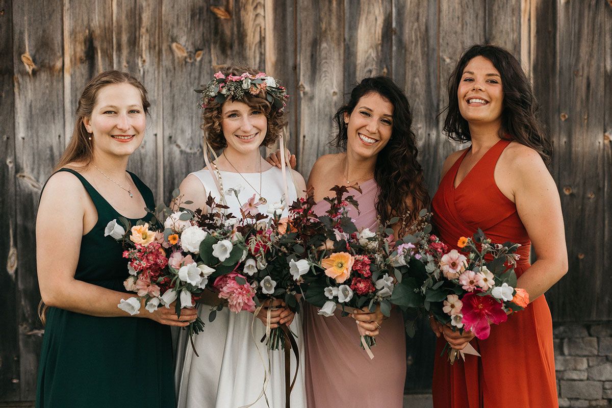 Bridesmaids' Dresses: They had a choice of 3 colors