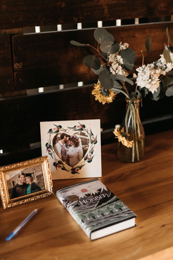 We had people sign a copy of The Hobbit, which will now forever be a family keepsake; we read a chapter each anniversary and get to see where guests signed.