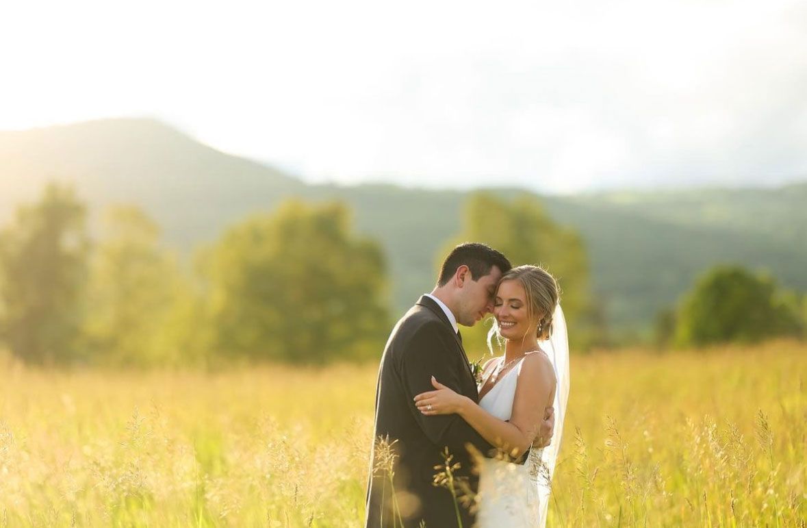 Within The Sablewood at Highview Springs’ circa 1870 barn, chandeliers glistened with glimmering light from soaring 40’ ceilings for Katie and Michael DellaRocco’s June 24th, 2023 wedding. Surrounded by the mountains, there were cocktails in the open air and quaint farm wood trestle tables setting the scene.