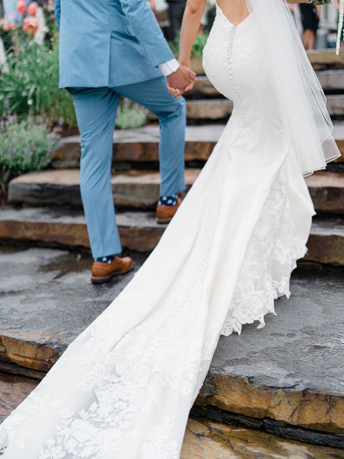 It stopped raining just 15 minutes before their reception. Allison bustled her heavy floral train and danced all night long.
