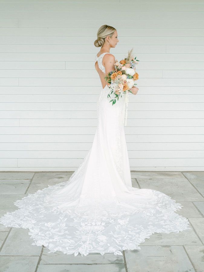 Stunning enough on its own, Allison’s only accessory for her wedding day was a set of Olive and Piper earrings.