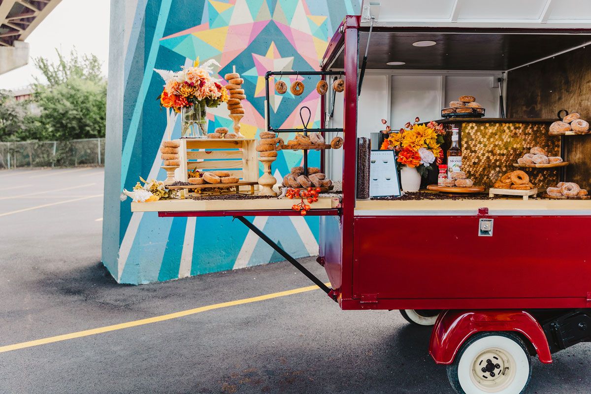 Perfect for autumn weddings, the Dessert Bar features cider donuts from Kinderhook, sweet pastry skewers, pretzels, and more.
