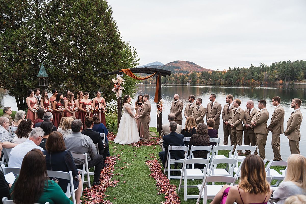 Lake Placid is exactly where we wanted to have the wedding. It was the first trip we took together, and a place that fills us both with joy. We chose Golden Arrow as our venue which sits directly on Mirror Lake, and we decided on October 10th so that all our guests could enjoy the breathtaking fall foliage of the Adirondacks.