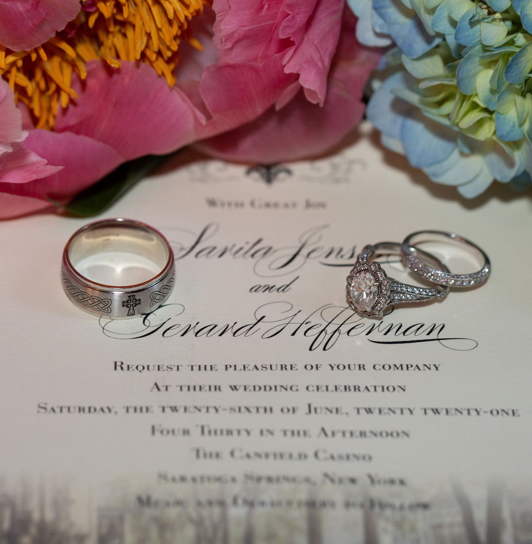 I knew right away I wanted to have “Saratoga” as the theme of our wedding, introducing all our family and friends to our new home. To do this, the very first thing I did was reserve a date at the Canfield Casino. From there, despite the challenges of the pandemic, and with the great help of our wedding planner and all the wonderful service providers, our perfect Saratoga wedding took place. It was a magical day!