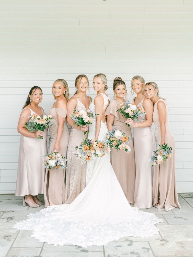 All six of Allison’s bridesmaids were able to find their dresses during back-to-back appointments at Lily Saratoga, as well. Following Allison’s guidance to “go with whatever’s comfortable,” each choose their preferred style in a similar champagne color scheme from the Jenny Yoo collection.