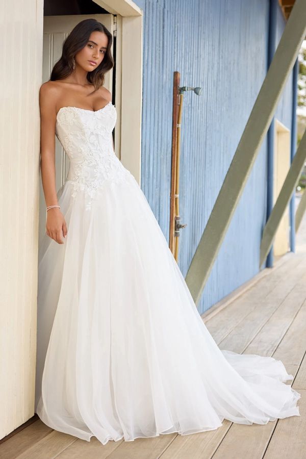 Elle's Bridal Boutique, the drop waist style wedding dress introduces a bodice that extends out lower than the typical waist, often to the hip area, before bursting into the skirt below. Originating in the 1920s, the drop waist has made quite the comeback due to its iconic elongated appearance that gives a sophisticated and luxurious appeal.