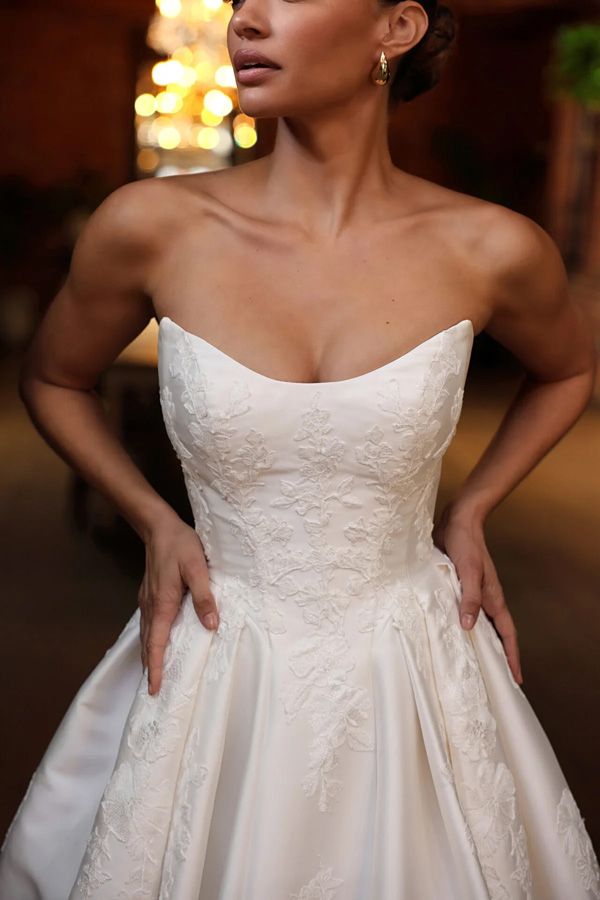 Combining the classic sweetheart neckline with a contemporary twist, the cat-eye style creates a look that's both empowering and romantic.